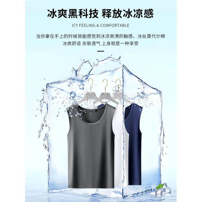 冰絲莫代爾棉坎肩背心男款夏季打底汗衫運動健身跨欄無袖上衣T恤
