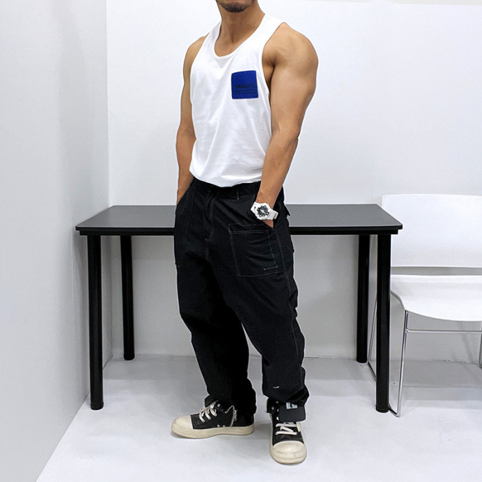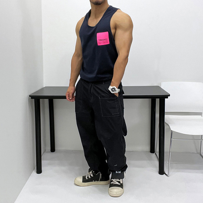 螢光撞色面料好!純棉修身背心無袖T恤肌肉男顯身材健身海灘旅遊
