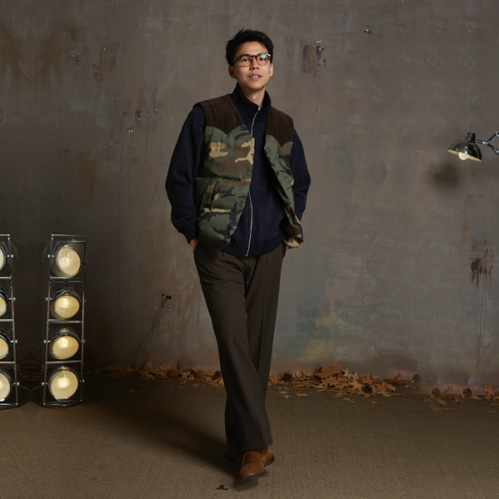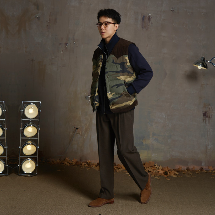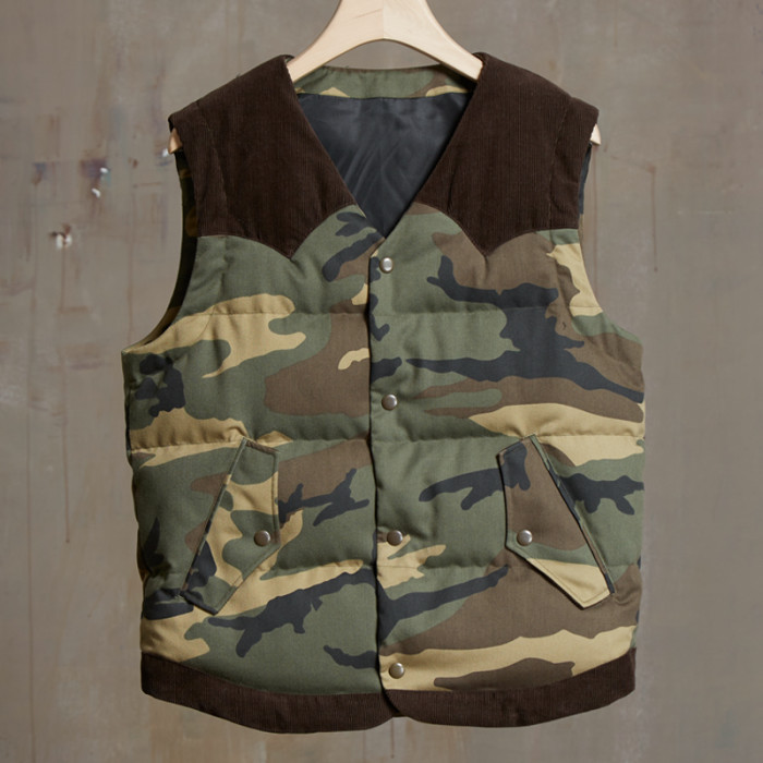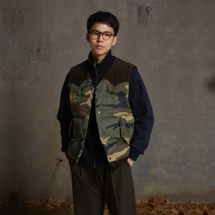 迷彩拼接羽絨馬甲|日本産燈芯絨格子布寬松水洗外套男白鵞絨保暖