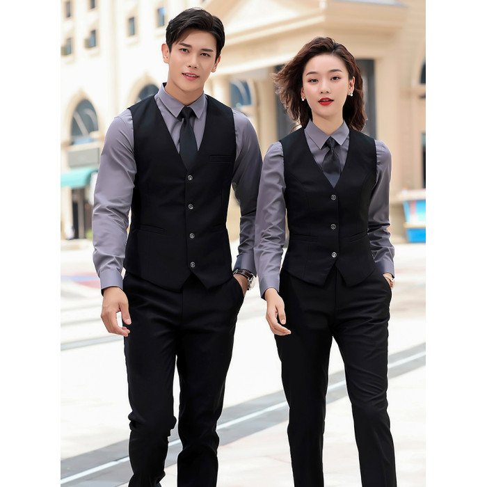職業裝男女同款正裝長袖襯衣工裝銀行酒店前台經理工作服馬甲套裝