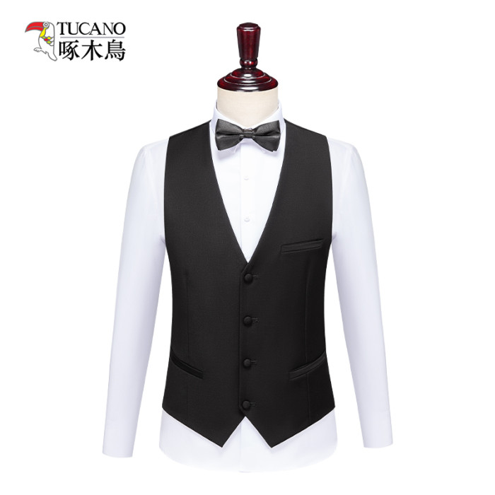 啄木鳥新款V領商務新郎婚禮西服禮服英倫風馬甲修身兄弟團伴郎服