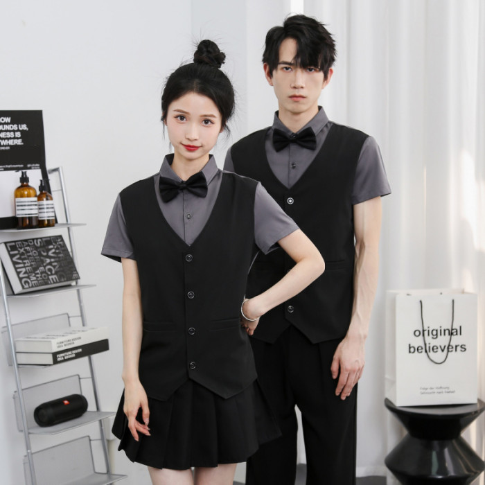 台球廳娛樂會所KTV服務員工作服短袖襯衫假馬甲酒店吧服務生工衣
