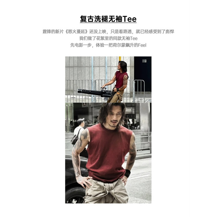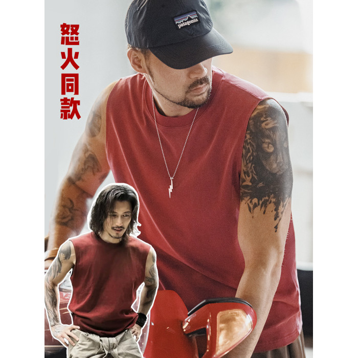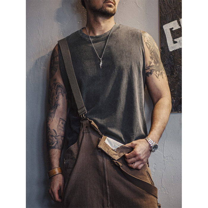 馬登工裝 美式復古硬漢做舊背心純棉運動健身打底坎肩無袖T恤男夏