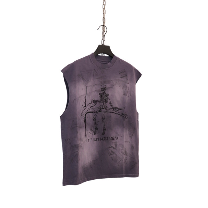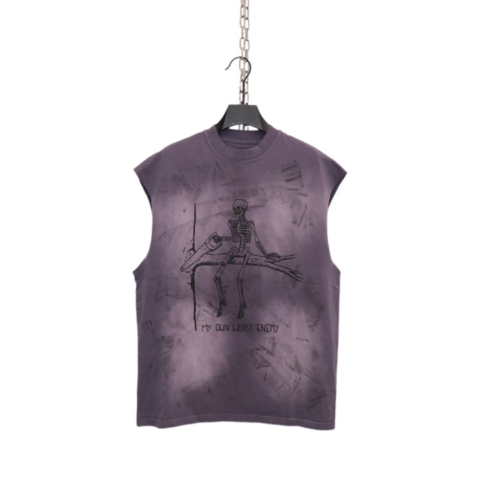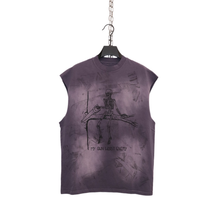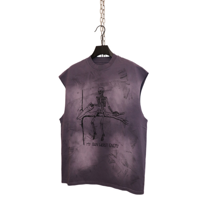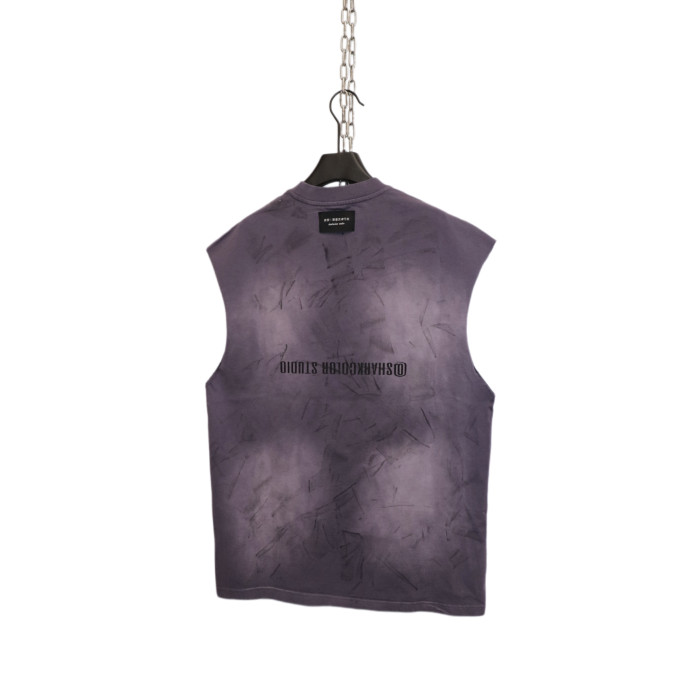 【sharkcolor】remake手工浸染漸變 骷髏系列美式無袖坎肩T恤背心