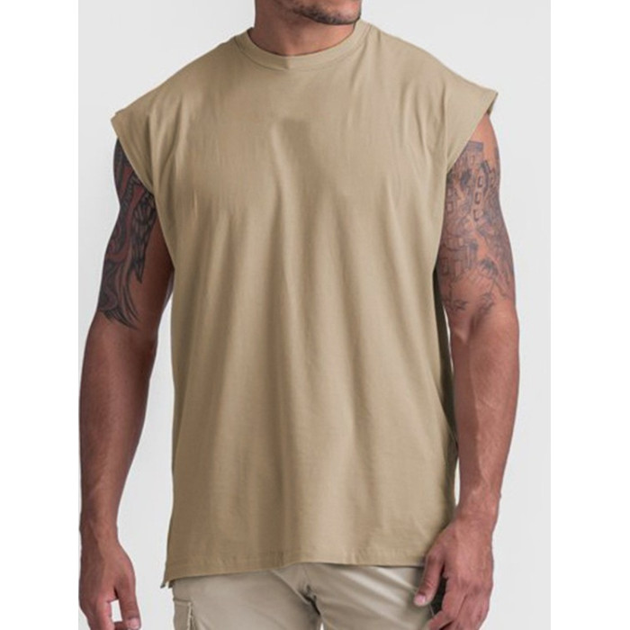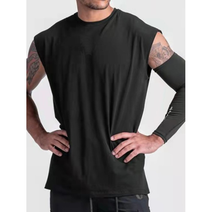 肌肉型男兄弟夏季薄棉彈力T坎肩無袖男運動背心健身房訓練t恤汗衫