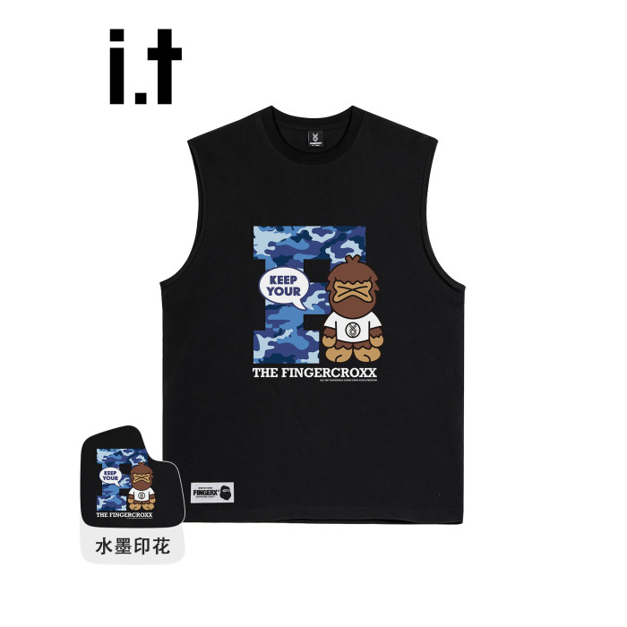 it FINGERCROXX美式猿人無袖純棉背心男潮牌2025新款夏季情侶裝