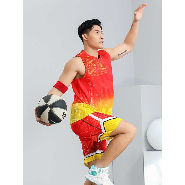 速乾背心短褲套裝男加肥加大碼休閒青年流行漸變色運動透氣籃球服