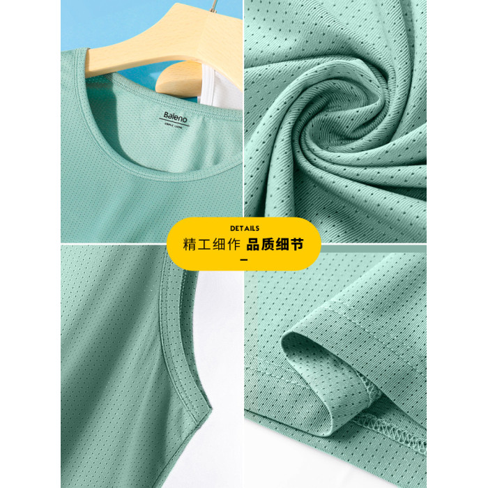 班尼路冰絲網眼背心男士夏季薄款綠色速乾衣美式健身運動無袖t恤