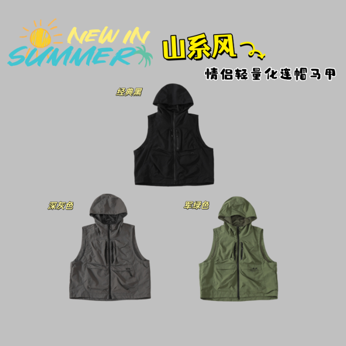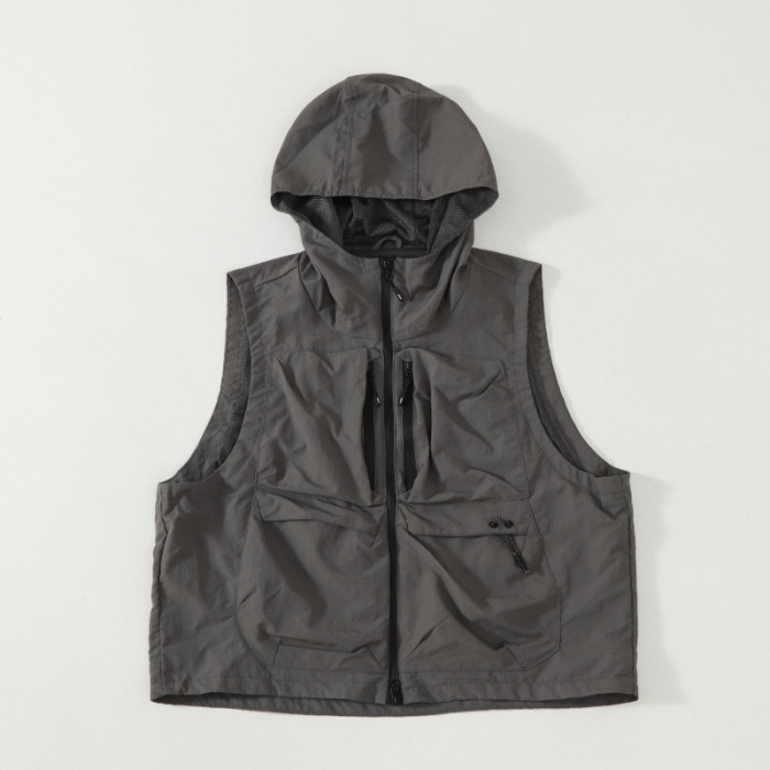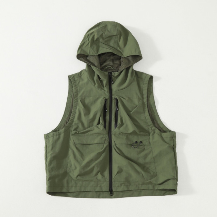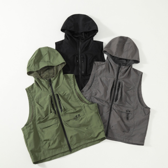 山系戶外立體多口袋防風防水工裝連帽馬甲夏季釣魚坎肩外套男女
