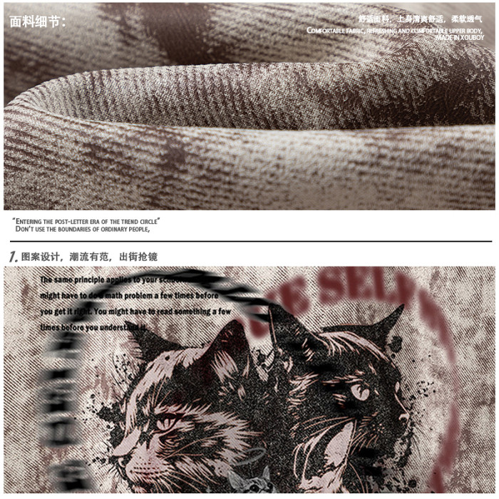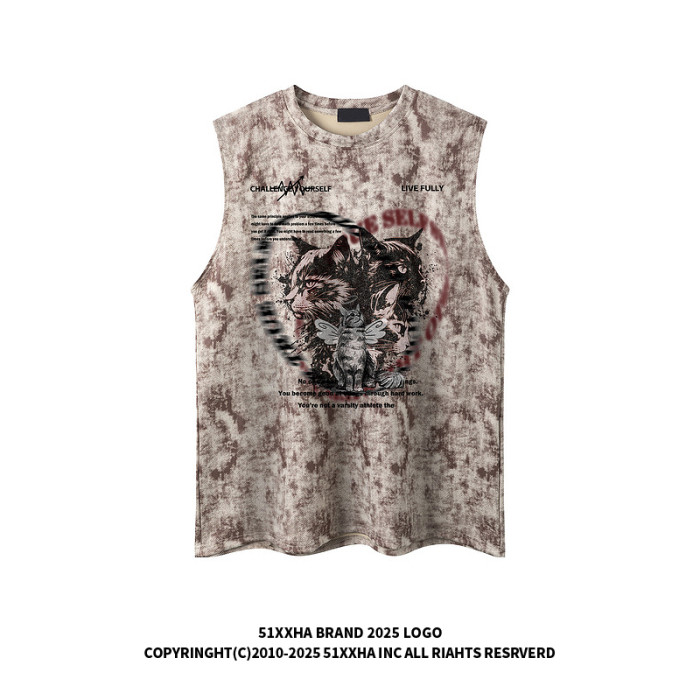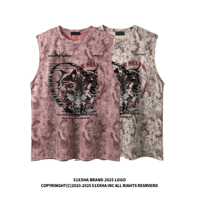 51嘻哈美式街頭貓咪印花紥染無袖T恤男夏季潮牌寬松休閒坎肩背心
