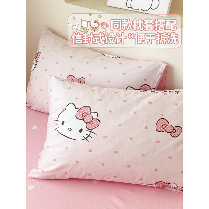 KT貓A類100精梳全棉床單單件床罩純棉兒童卡通少女心宿舍單人被單