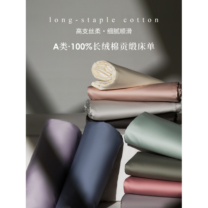 簡約A類100S長絨棉貢緞床單單件全棉純棉宿舍被單三件套純色床笠