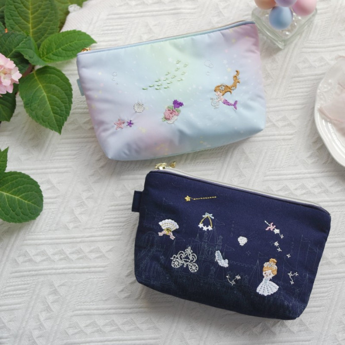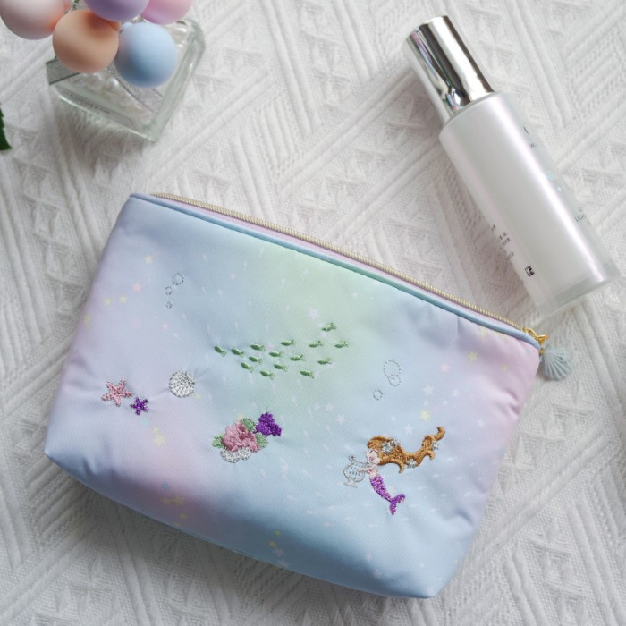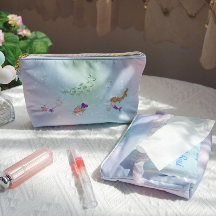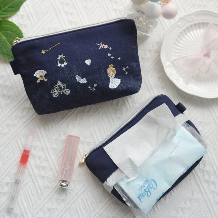 日系可愛刺綉化妝包口紅氣墊補妝袋姨媽巾收納包紙巾包可攜式手拿包