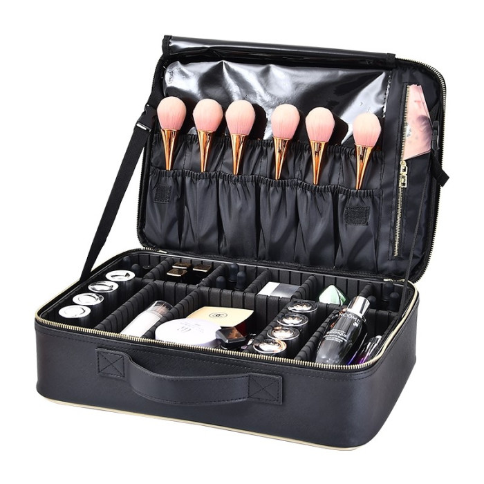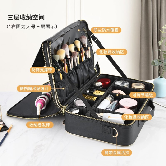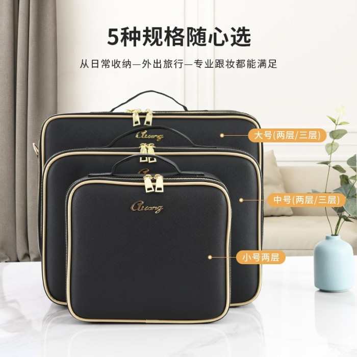 化妝包2023新款高級大容量化妝箱可攜式專業手提輕便高檔紋綉工具箱