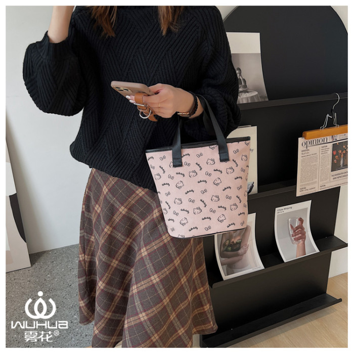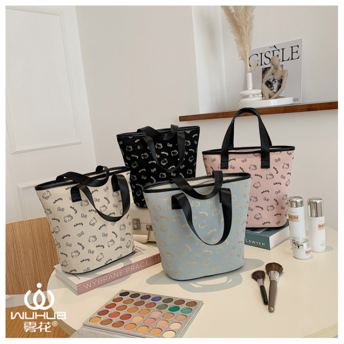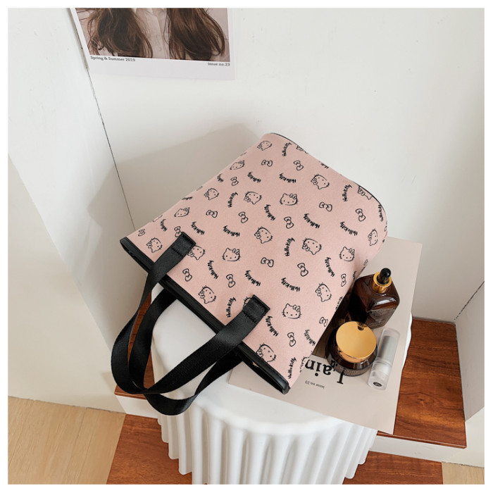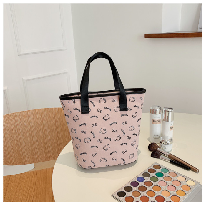 霧花HelloKitty大容量ins手提袋女可攜式化妝包飯盒包水杯袋媽咪包