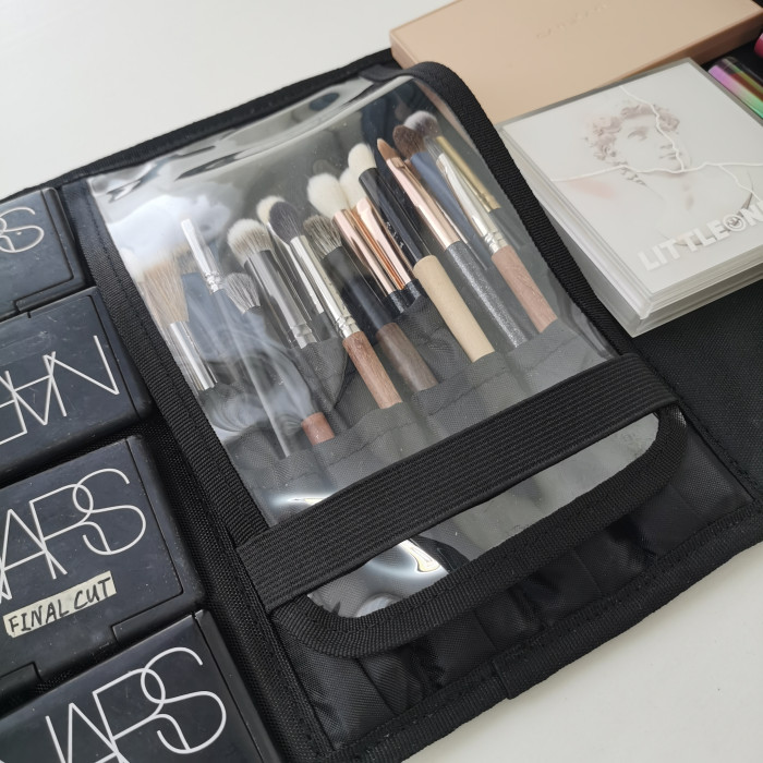 馥雅迪三折化妝包專業化妝量化妝品收納包跟妝補妝包黑色箱內包