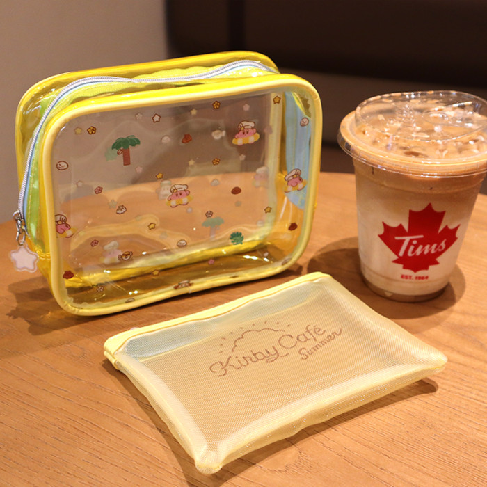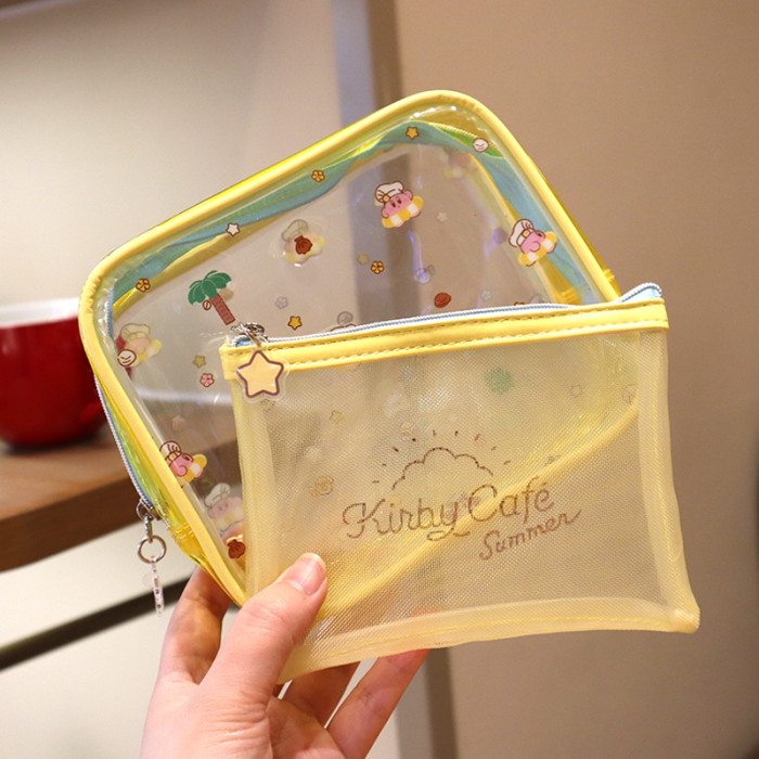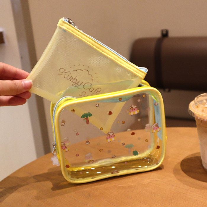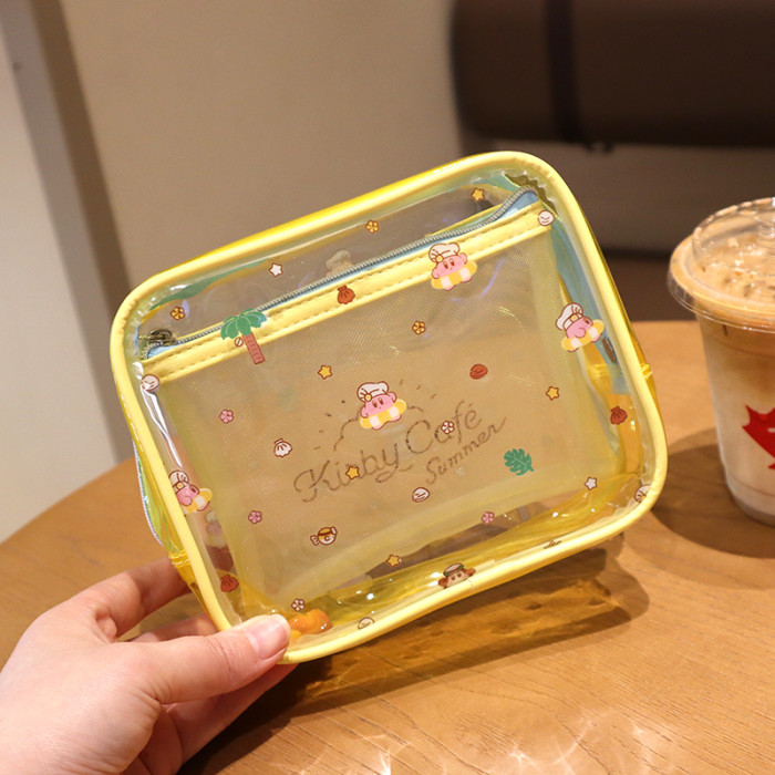 新款PVC網紗防水透明兩件套洗漱包化妝包卡通收納可攜式旅行收納包