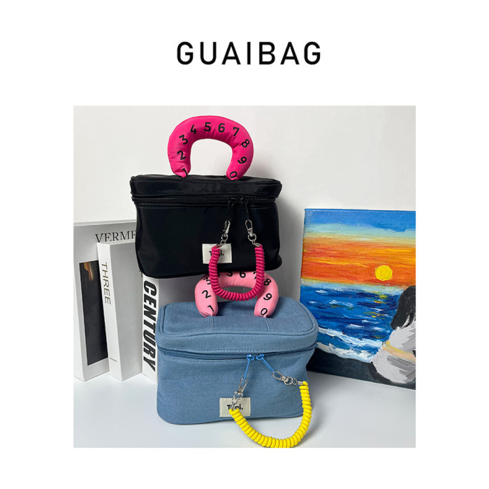 大容量化妝包可愛可攜式旅行洗漱包劉亦菲同款高顔值撞色設計手提包