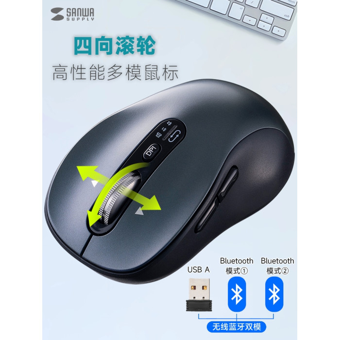日本SANWA無線藍牙滑鼠3模充電靜音可自定義按鍵電腦辦公四向滾輪