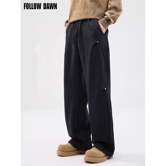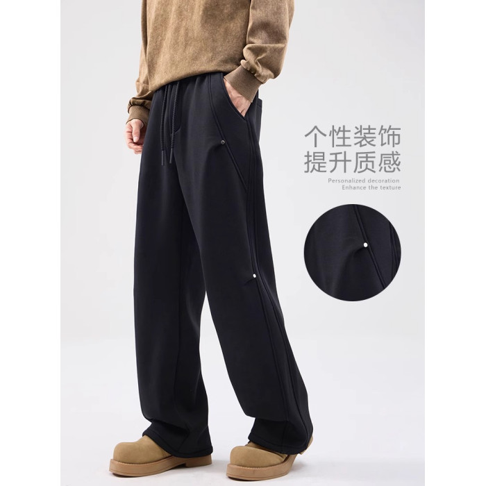 2025直筒衛褲男春季美式高街褶皺繖兵褲寬松濶腿運動休閒長褲子