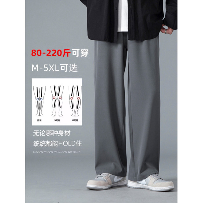啄木鳥2025夏季新款薄款冰絲寬松直筒休閒褲子男士西裝褲濶腿長褲