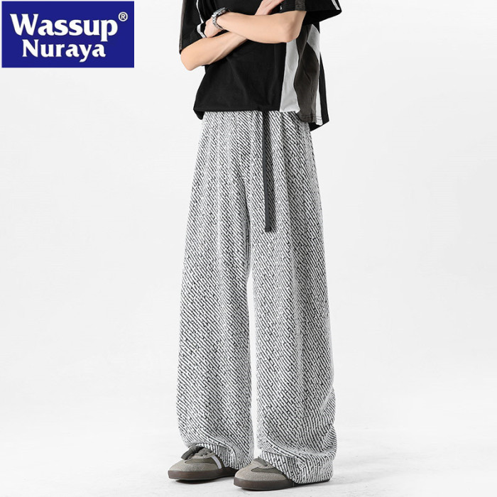 WASSUP NURAYA星空紋運動直筒衛褲男春秋2025寬松垂感休閒濶腿褲
