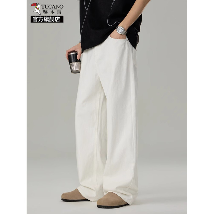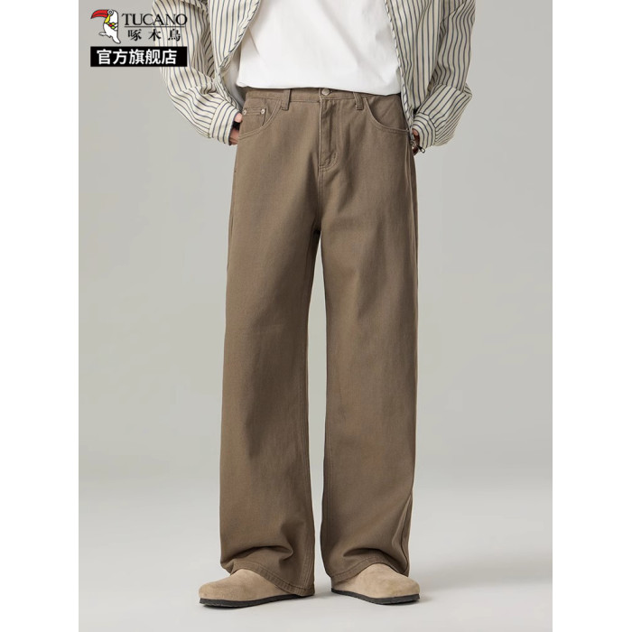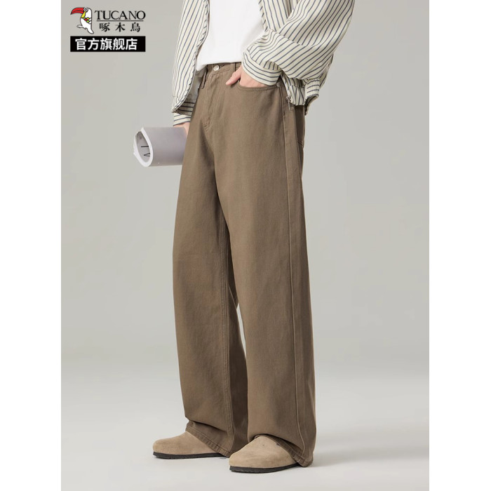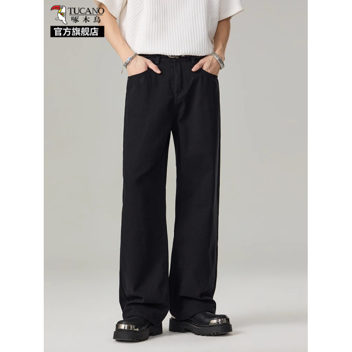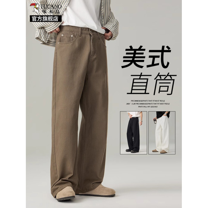 啄木鳥美拉德色牛仔褲男夏季薄款美式復古直筒寬松濶腿休閒褲子K