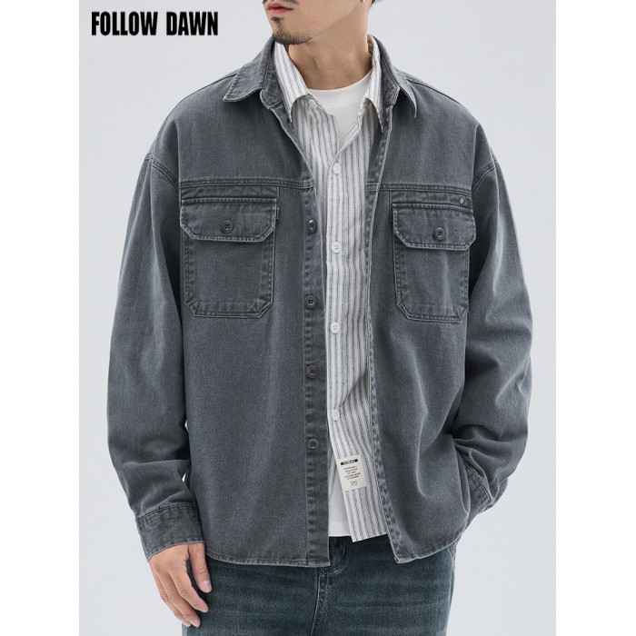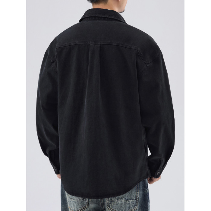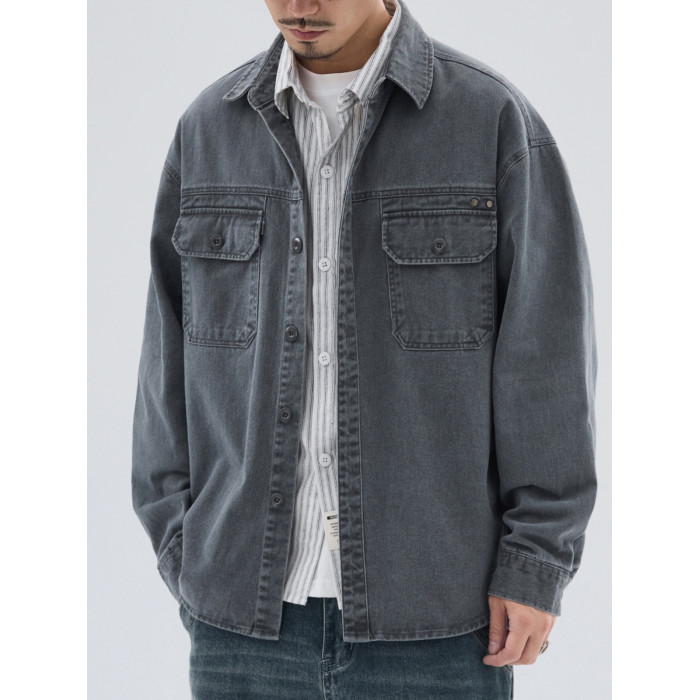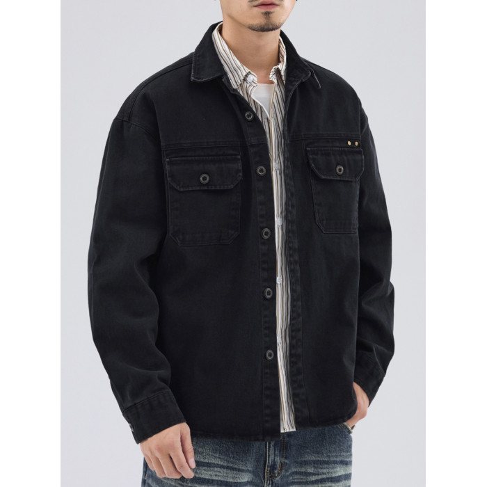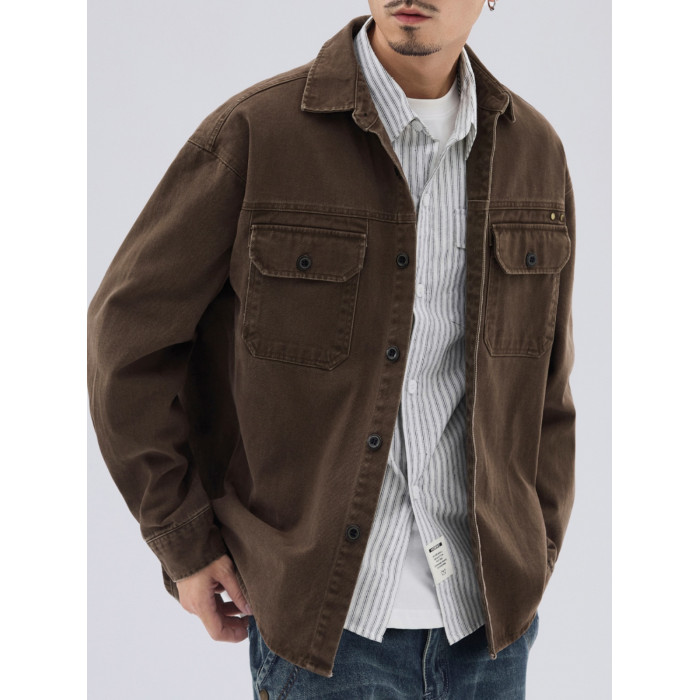 美式復古工裝襯衫外套男士秋冬款純棉寬松休閒翻領長袖襯衣