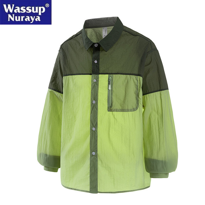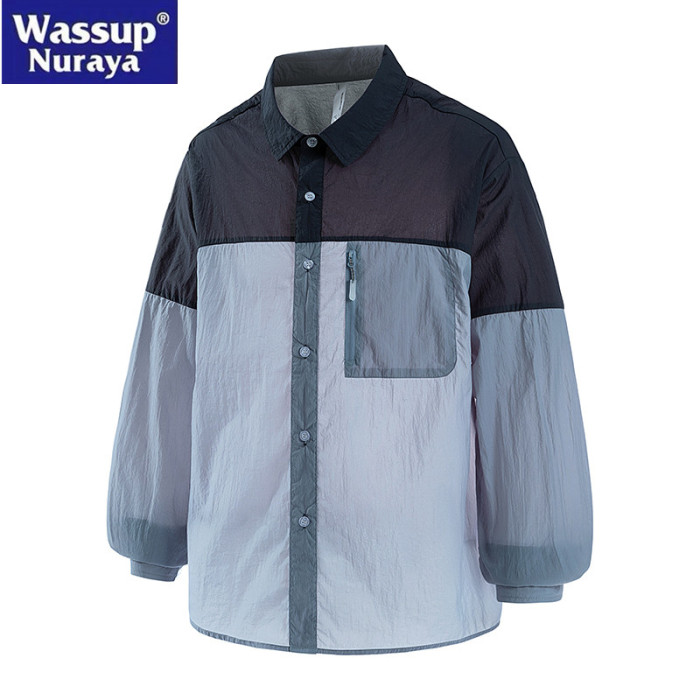 WASSUP Nuraya潮牌夏季冰絲長袖防曬衣男士撞色拼接輕薄透氣外套