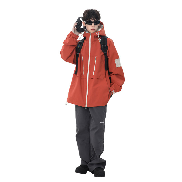WASSUP NURAYA戶外防潑防風夾克男春秋寬松休閒百搭情侶連帽外套