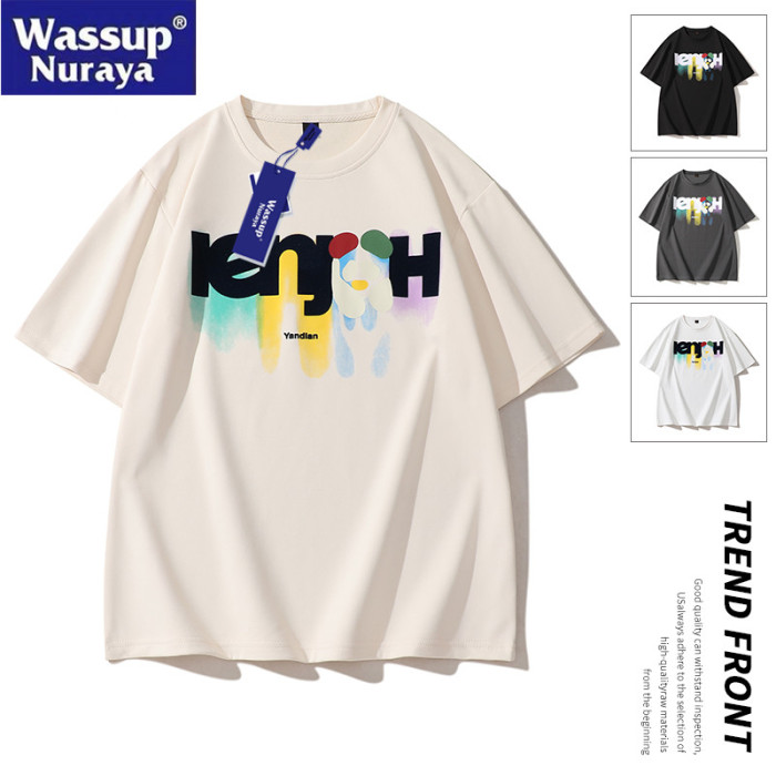 WASSUP Nuraya潮牌夏季寬松T恤男士青春百搭青年休閒運動大碼短袖