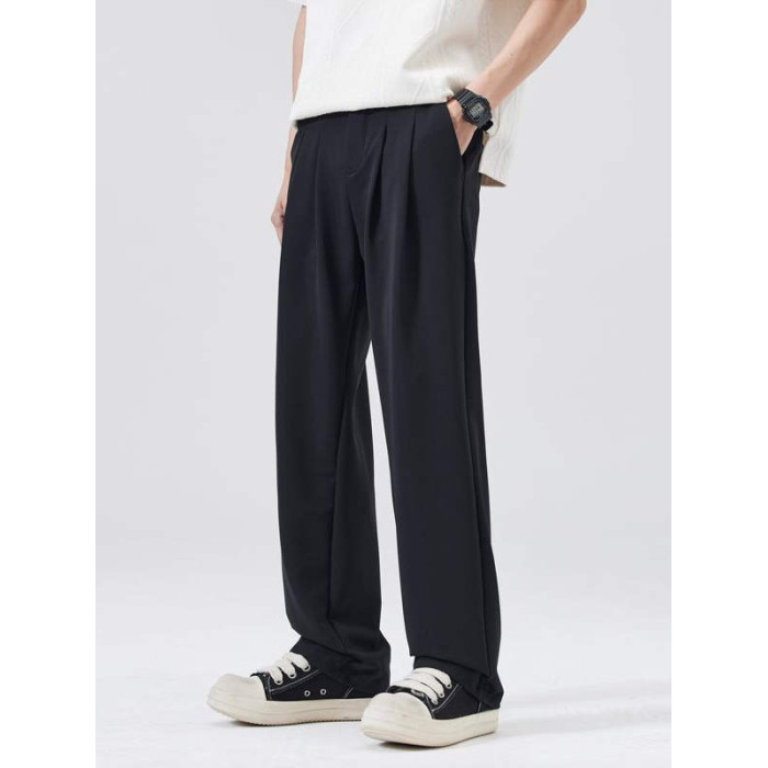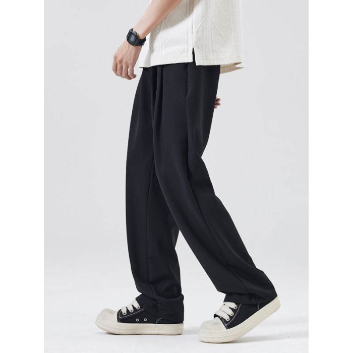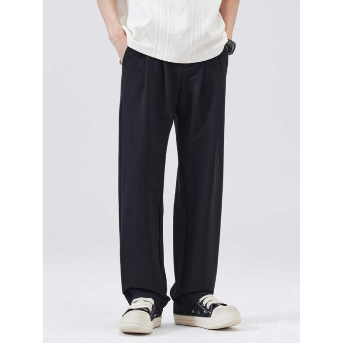 純色垂感休閒褲男士夏季薄款2025新款小西褲痞帥寬松直筒長褲男