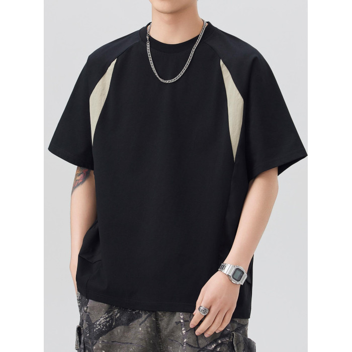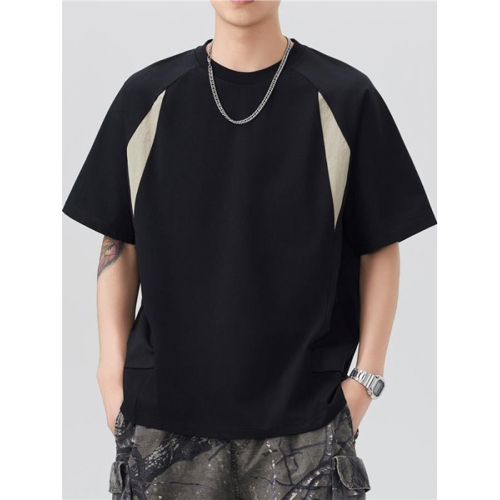 冰感索羅娜短袖t恤男夏季薄款拼接撞色休閒百搭速乾防曬上衣