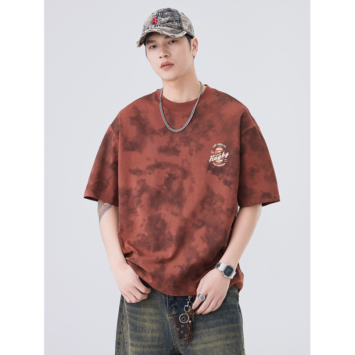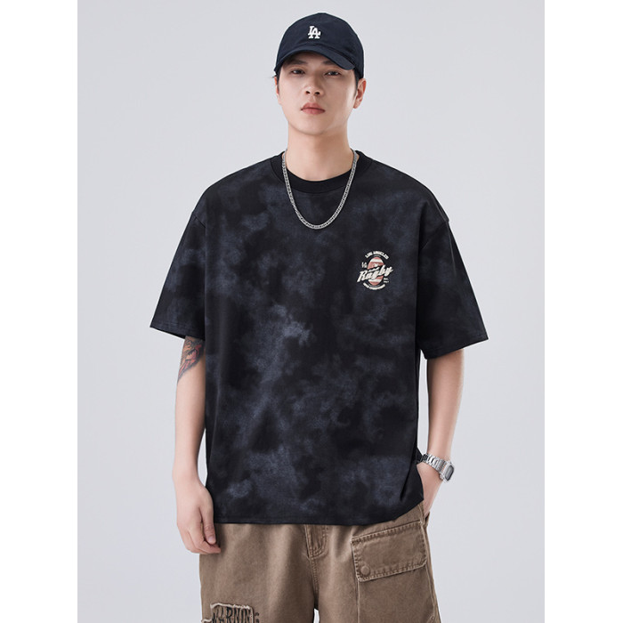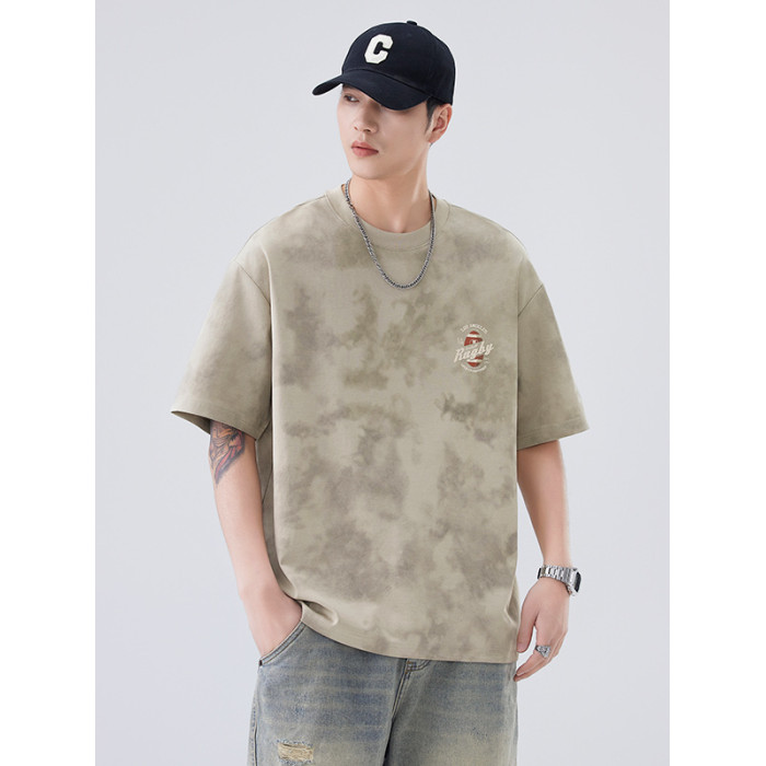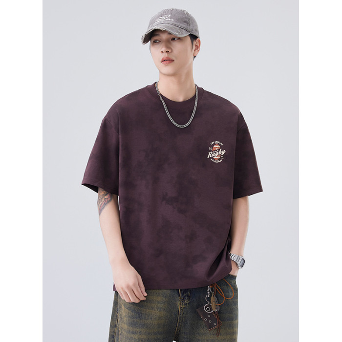 美式復古高街印花短袖T恤男士街頭日系寬松休閒短袖重磅夏季圓領