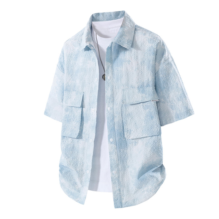WASSUP Nuraya潮牌襯衫男士痞帥夏季泡泡紗短袖襯衣工裝翻領外套