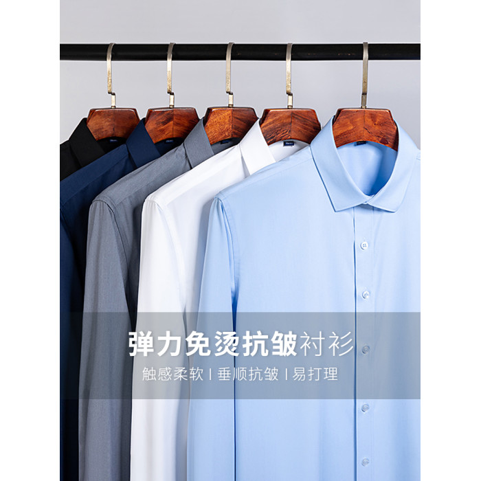 【竹纖維】啄木鳥白色男士長袖襯衫2024新款夏季商務正裝結婚襯衫
