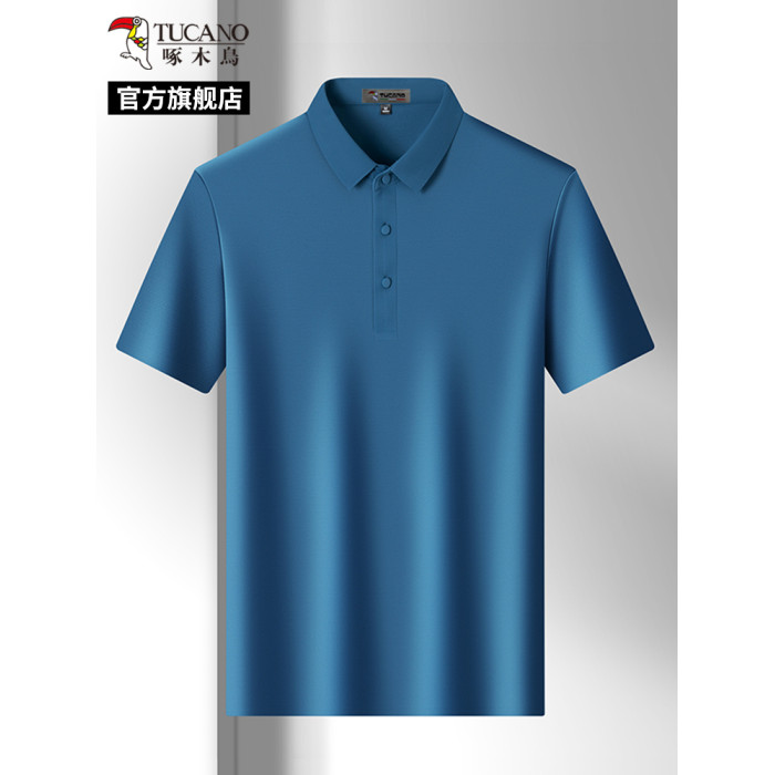 【涼感冰絲】啄木鳥夏季短袖Polo衫男士商務休閒薄款中年父親t恤C