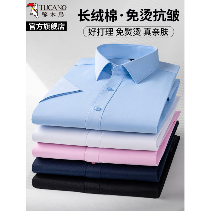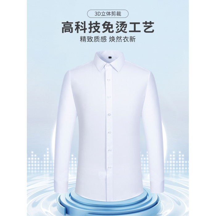 啄木鳥男士襯衫短袖結婚伴郎男免燙抗皺商務秋季白色長袖爸爸襯衣