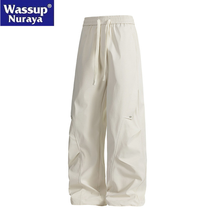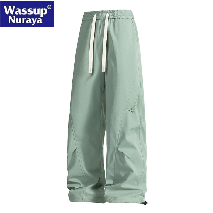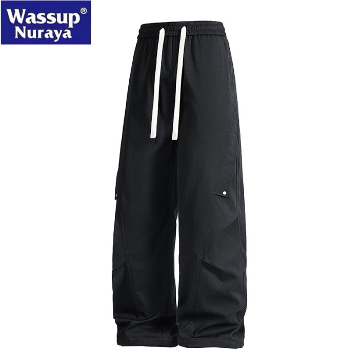 WASSUP Nuraya潮牌美式沖鋒褲男春秋寬松休閒百搭純色青年直筒褲