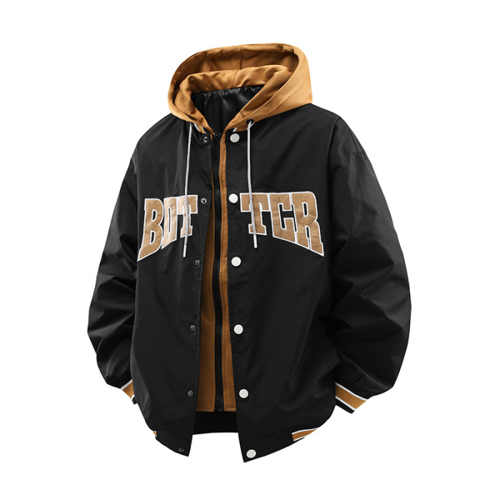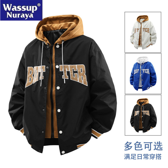 WASSUP Nuraya潮牌假兩件夾克男士春秋防風連帽外套男生青年上衣