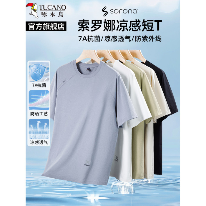 啄木鳥【索羅娜7A抗菌】重磅男士短袖夏季新款半袖涼感圓領T恤男