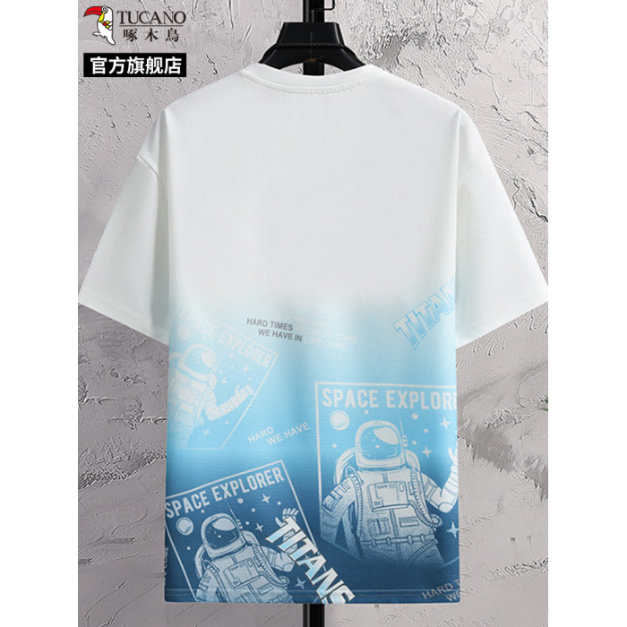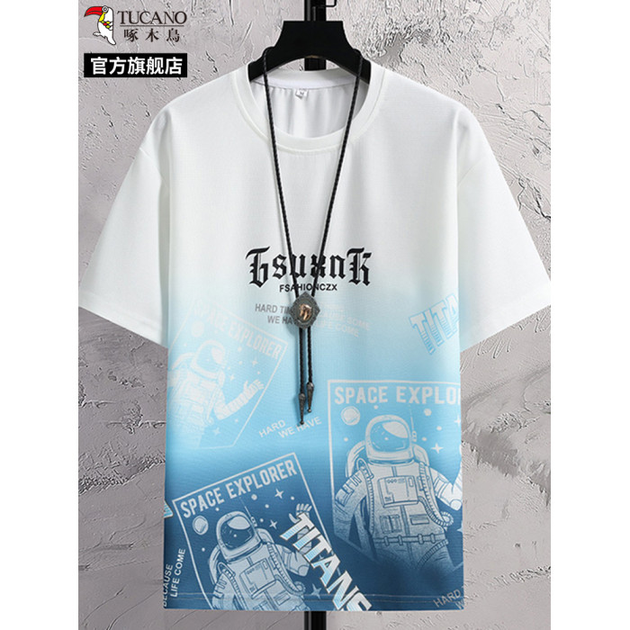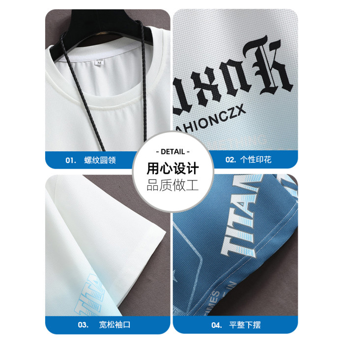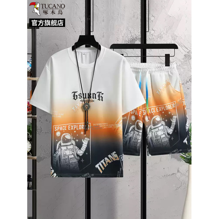 啄木鳥短袖套裝男2025夏季新款短褲漸變色休閒運動冰絲兩件套T恤