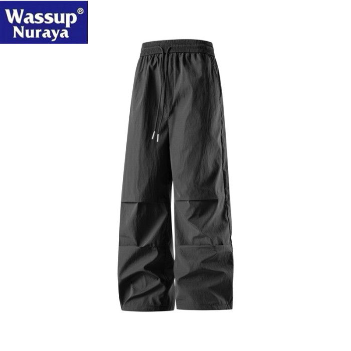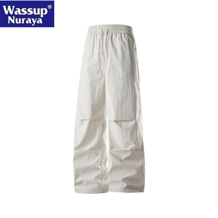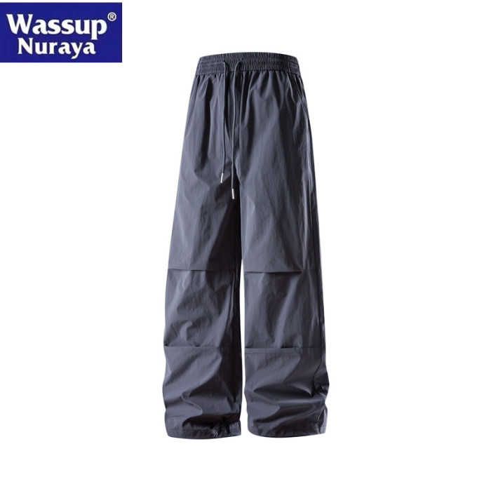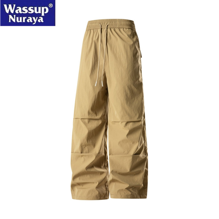 WASSUP Nuraya潮牌痞帥工裝寬松冰絲直筒休閒戶外登山沖鋒褲男士