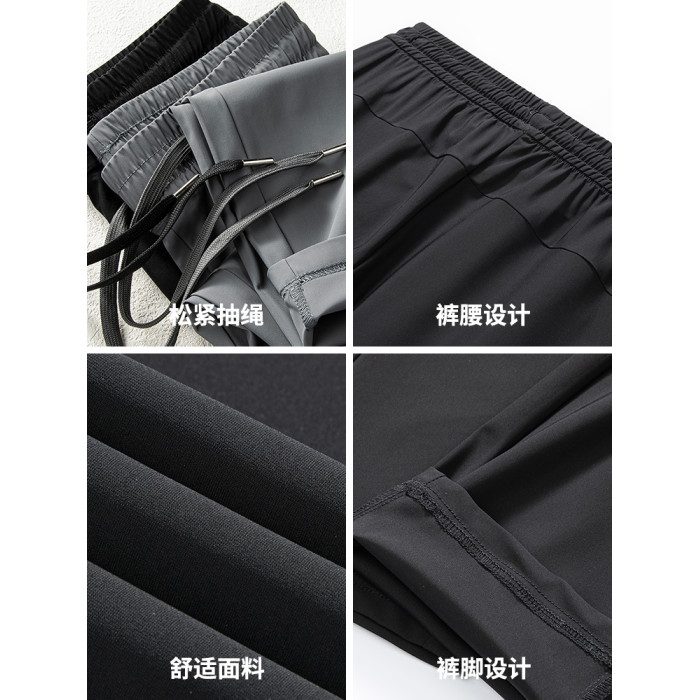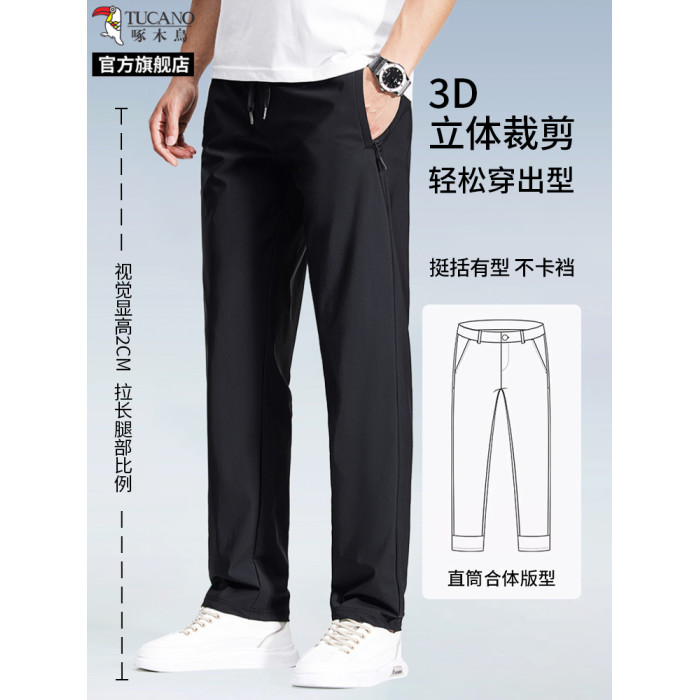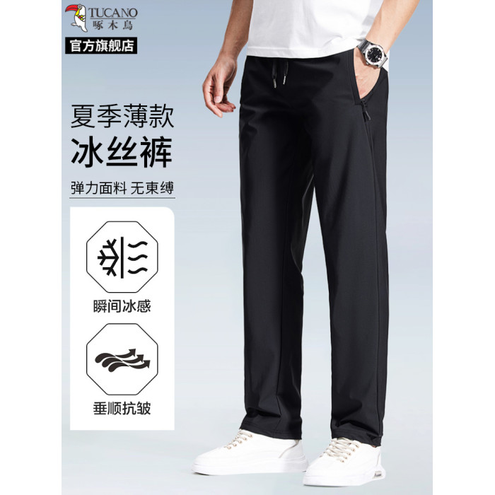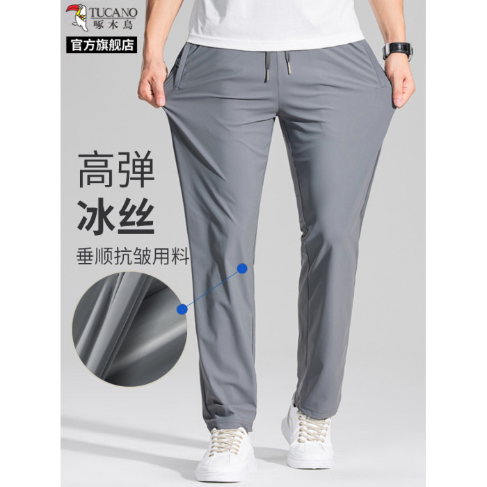 啄木鳥官方旗艦店冰絲褲男士夏季薄款休閒褲子速乾爸爸直筒運動褲