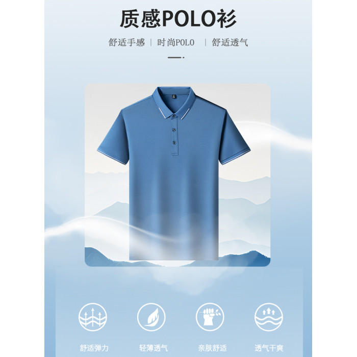 啄木鳥含桑蠶絲男士短袖polo衫爸爸輕奢高檔T恤翻領冰絲透氣男裝C