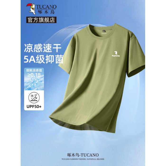 啄木鳥冰絲短袖男款夏季吸汗透氣涼感防曬體恤男士運動速乾衣t恤Y
