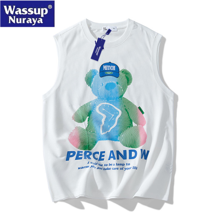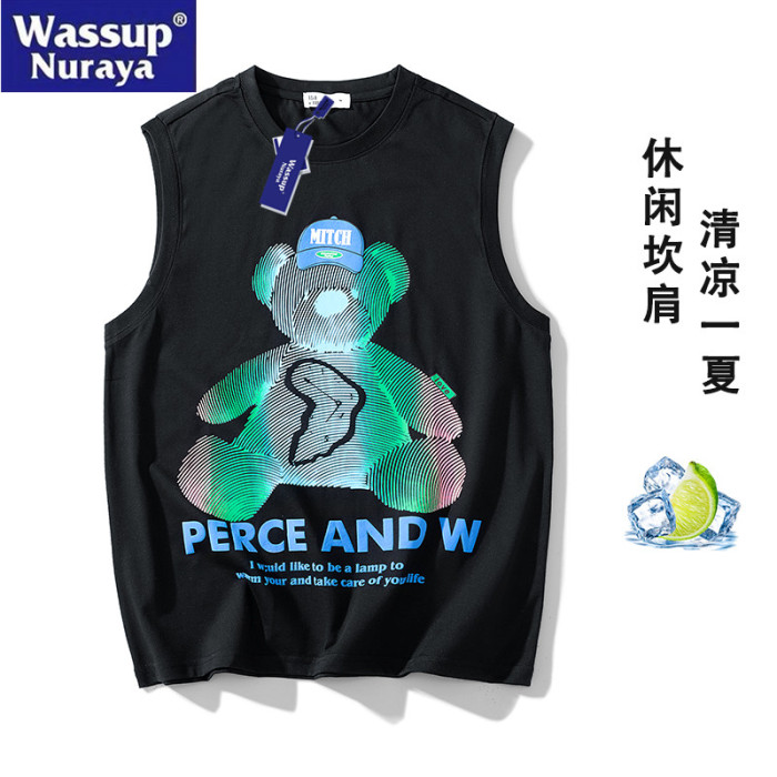 WASSUP Nuraya潮牌夏季背心男士高街無袖T恤籃球跑步休閒情侶短袖