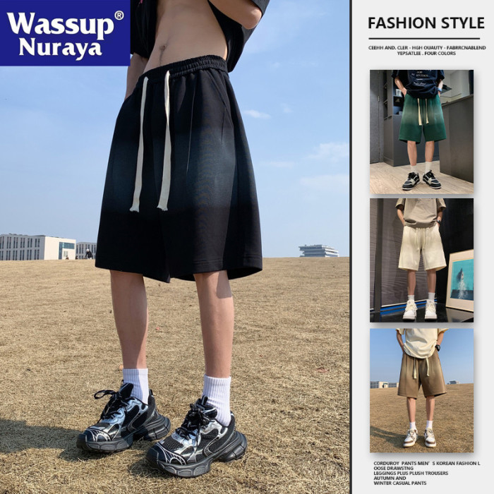 WASSUP NURAYA夏季短褲男士復古漸變中褲寬松休閒運動沙灘五分褲