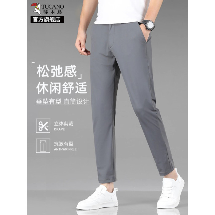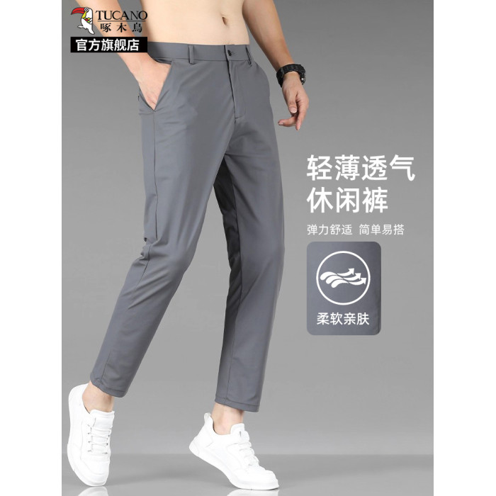 啄木鳥冰絲九分休閒褲子男士夏季薄款修身直筒商務速乾通勤西褲K