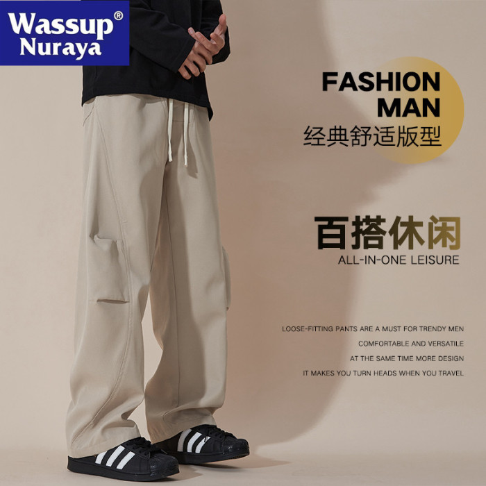 WASSUP NURAYA美式工裝褲男士春夏寬松濶腿直筒百搭青少年休閒褲